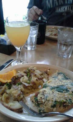 Our goal was to find a sit-down breakfast restaurant. After walking around for about 45 minutes, and only finding ‘to-go’ type options, we asked for some help. We were directed to CJ’s. Ten minutes later we were seated at a table with a view of the Space Needle in a comfortable little restaurant with amazing service. I ordered a Farmers Omelet with bacon, basil, mozzarella, and spinach in it, with red potatoes, and a Dahlia. What’s a Dahlia you ask? It is freshly squeezed grapefruit juice and champagne… how fun!! It was actually a little strong for me, but the omelet was AMAZING! Going to Seattle? Find CJ’s! 1st and Cedar. Jesse went with a more normal order of coffee and chicken fried steak.
