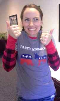 stand for the stars and stripes. A t-shirt depicting a donkey and elephant partying, as it all seems like a shit-show sometimes anyways. I wear a thermal underneath my T as today is likely to be stormy. And lastly, I am accessorized fittingly for the climate of the day.